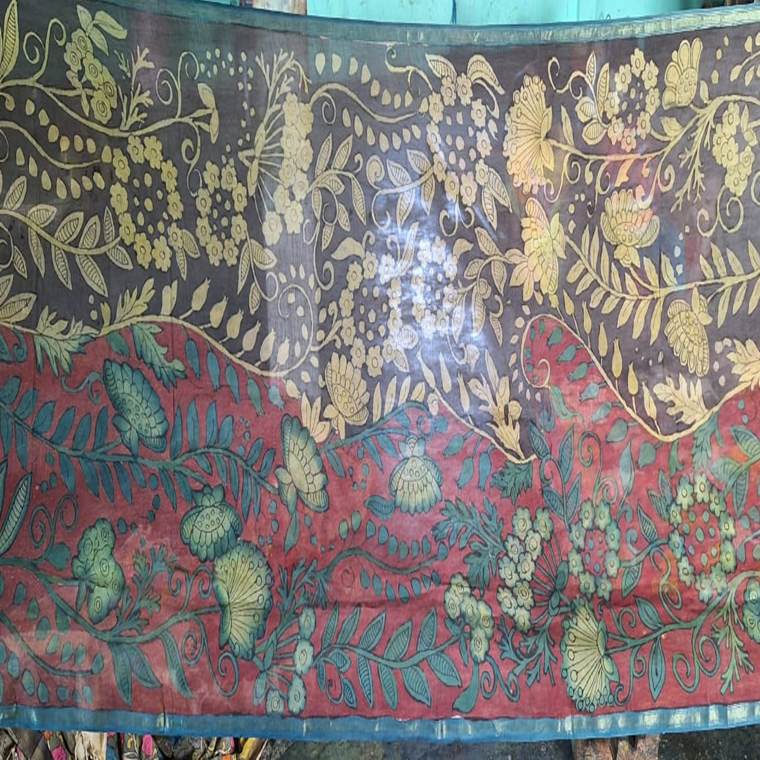 Our Kalamkari cholis are carefully crafted with traditional motifs and vibrant patterns, blending art and style in a way that complements both classic and contemporary fashion. Paired with our handcrafted saris, these cholis make a statement, adding depth and beauty to any outfit. Our saris, adorned with Kalamkari’s signature floral patterns, mythological scenes, and symbolic elements, are more than just garments—they are wearable pieces of art, offering a timeless elegance that can be cherished across generations. At Sri Srinivasa Kalamkari Seva Sangam, we are dedicated to promoting sustainable fashion that honors artisans and preserves heritage crafts. Each choli and sari is made with eco-friendly dyes and materials, emphasizing our commitment to ethical and responsible craftsmanship. By choosing our Kalamkari creations, you support traditional artisans and help keep this beautiful, ancient art form alive. We invite you to experience the elegance of Kalamkari cholis and saris, each woven with history, culture, and passion.